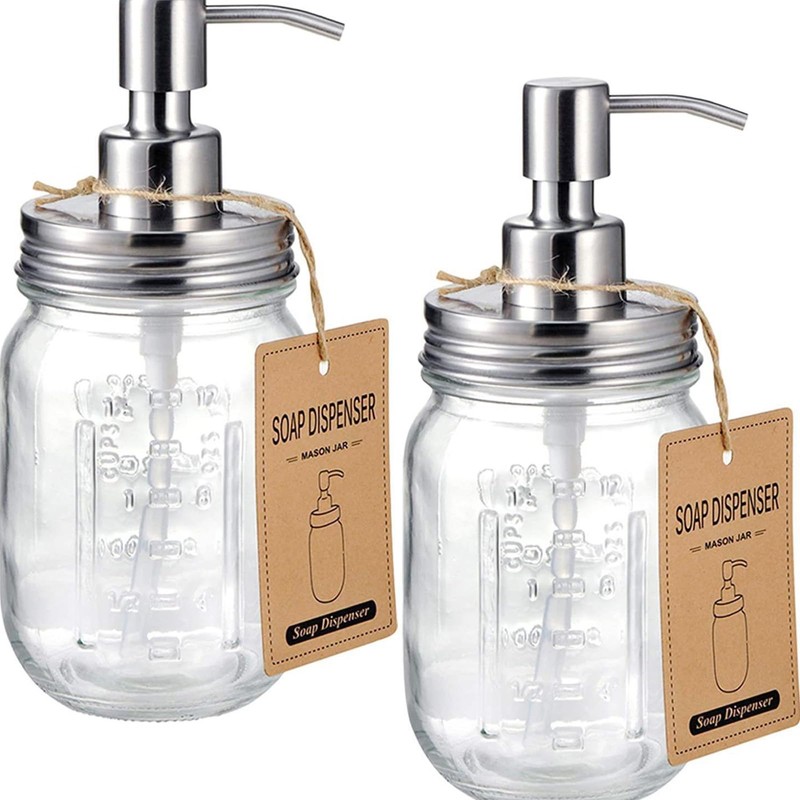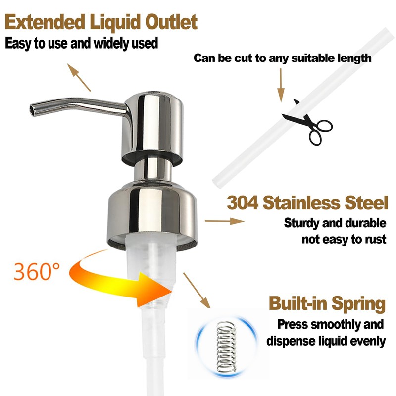 - The brushed silver pump head is made of excellent materials that can effectively prevent fingerprints and dust stains and keep your soap dispenser clean and beautiful, fashionable and practical.