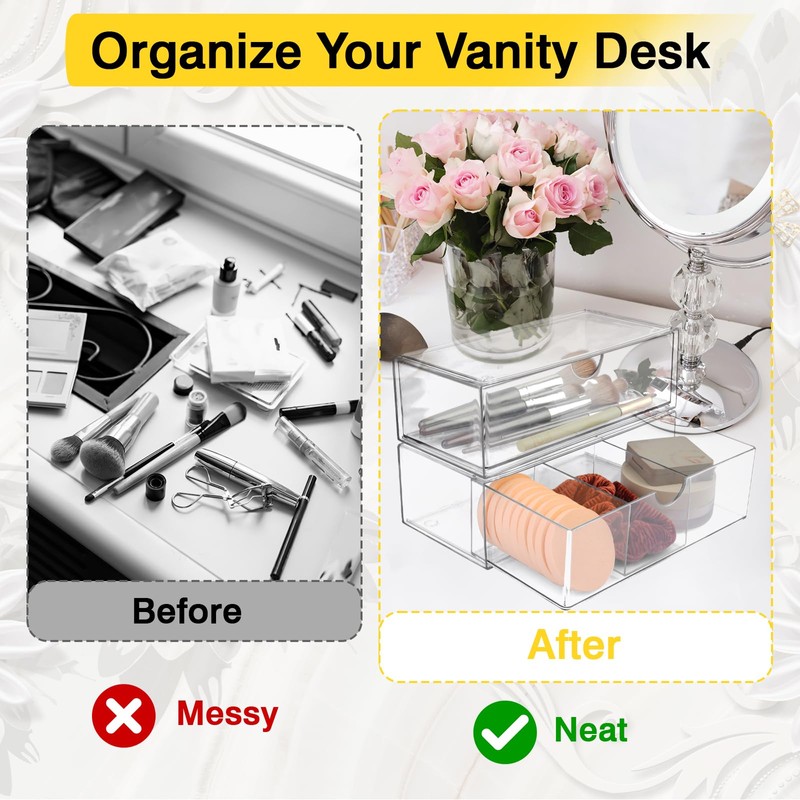 - Stackable design: make up drawer organizers are stackable, which helps to save space and maximize storage efficiency. You can easily adjust the arrangement to suit your needs