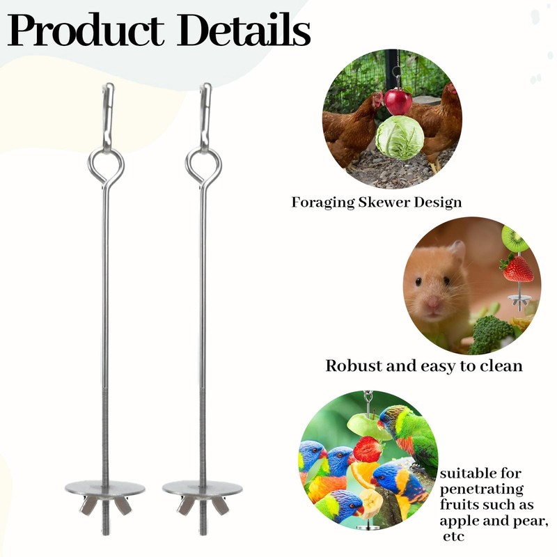 Pack of 2 Stainless Steel Bird Skewers, Budgies Toy, Cockatiel Toy, for Birds, Parrots, Budgies, Vegetables and Foraging Toys