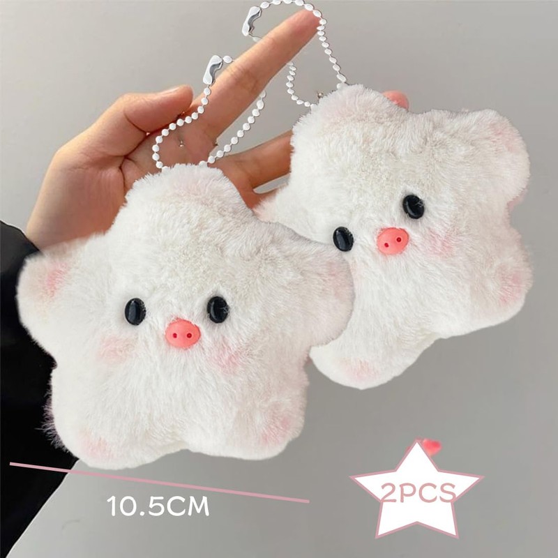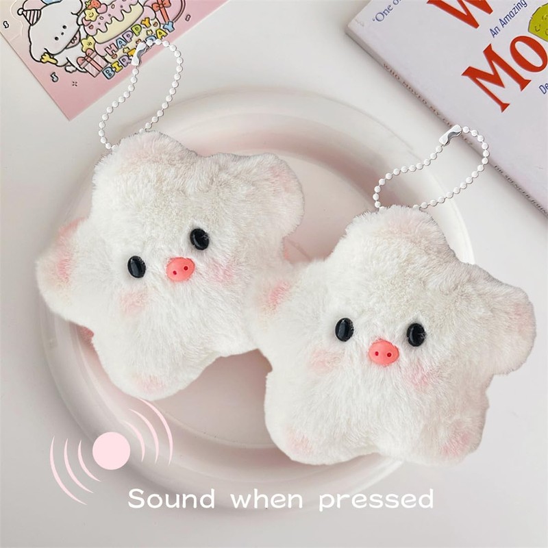 Pack of 2 Star Keyrings, Squeaky Doll, Pig Style, Star Key Fob of Caricature, Key Ring for Children, Children's Birthday Party Bag