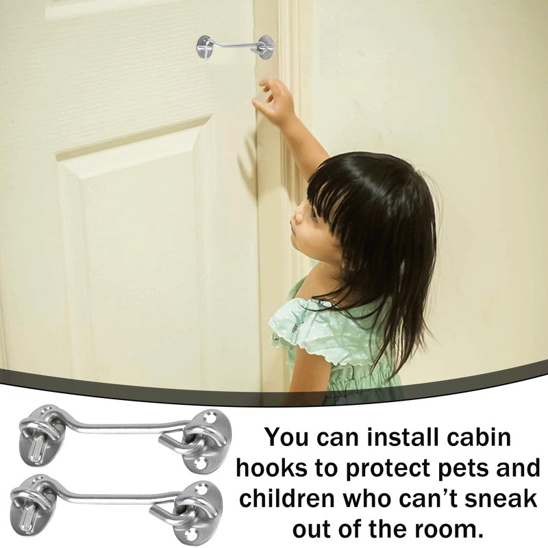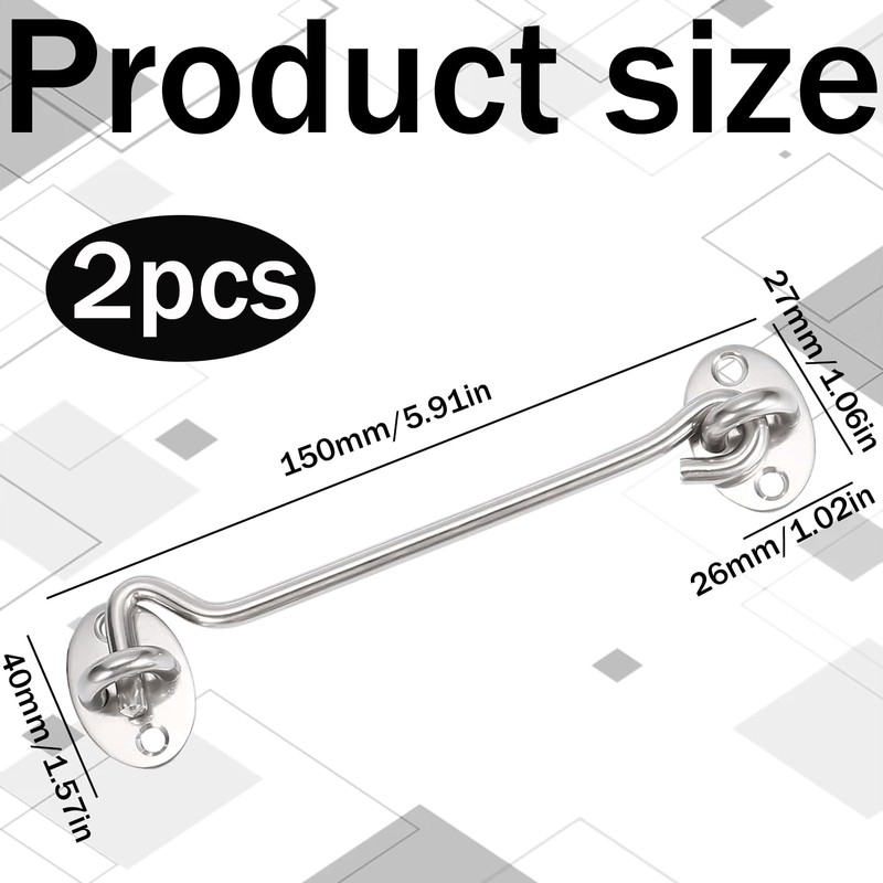 - Stainless steel storm hook: Storm hook is made of strong and thickened stainless steel material, which has corrosion and rust protection properties. The door hook lock is flat and burr-free and can be used indoors, outdoors and in damp rooms.