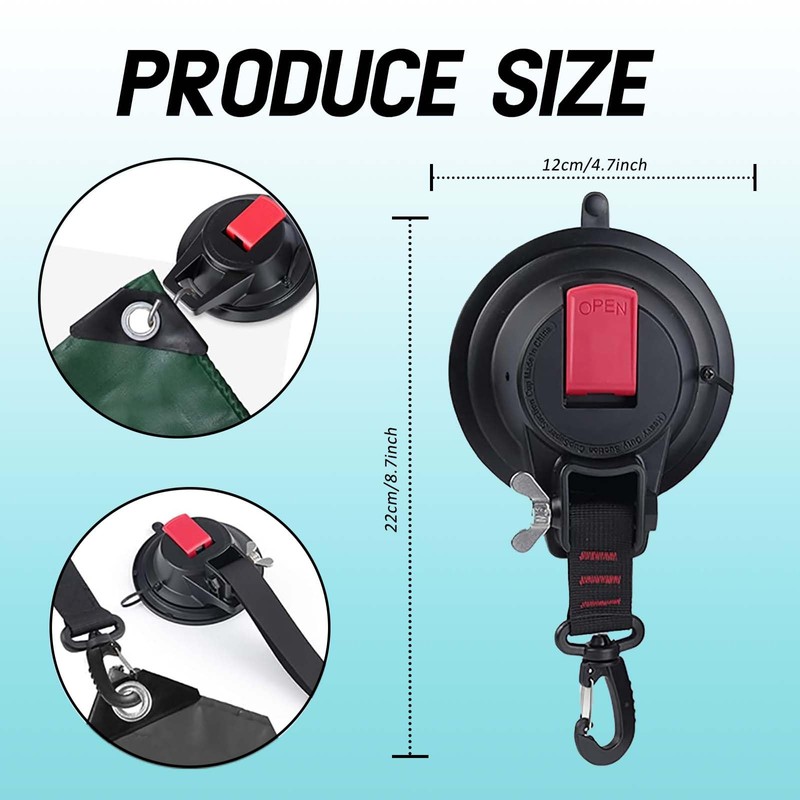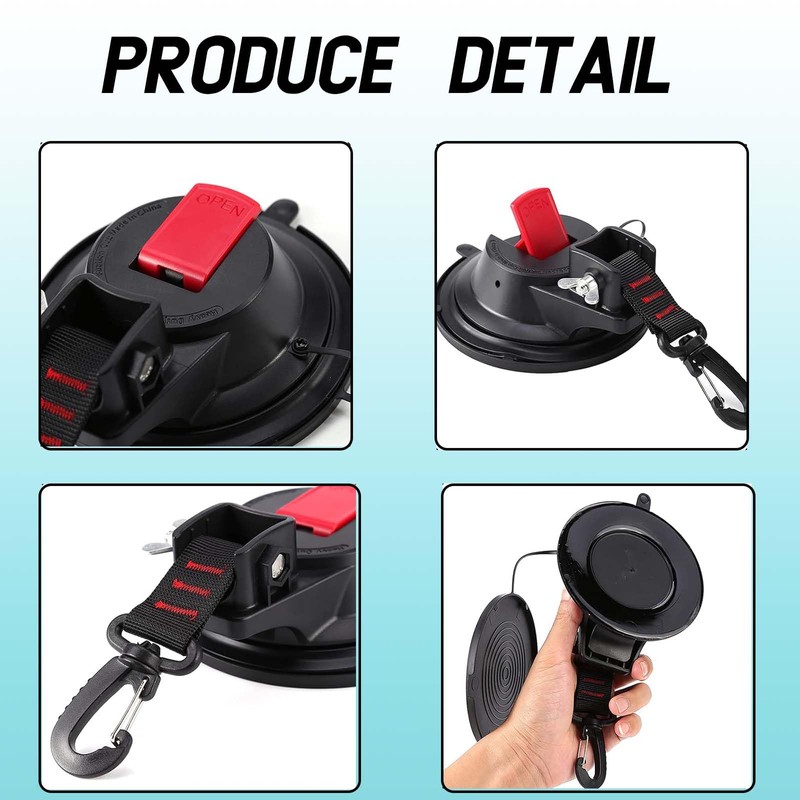 - Heavy-duty camping suction cups are easy to use: For outdoor campers, suction hooks are the best solution, no screws required, quick and convenient. Simply press the suction cup against a clean, smooth vehicle surface and fold the ends of the joystick together.