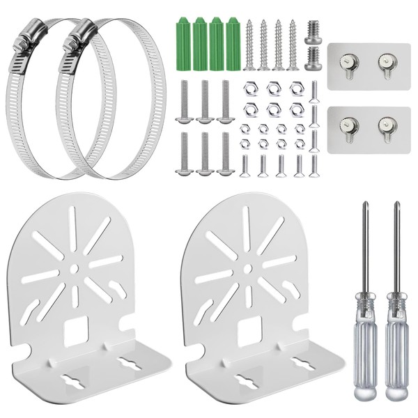 Pack of 2 Surveillance Camera Mount Kit, Bracket for Surveillance Camera with 2 Adjustable Hose Clamps, for Dome Cameras CCTV Cameras IP Cameras (White)