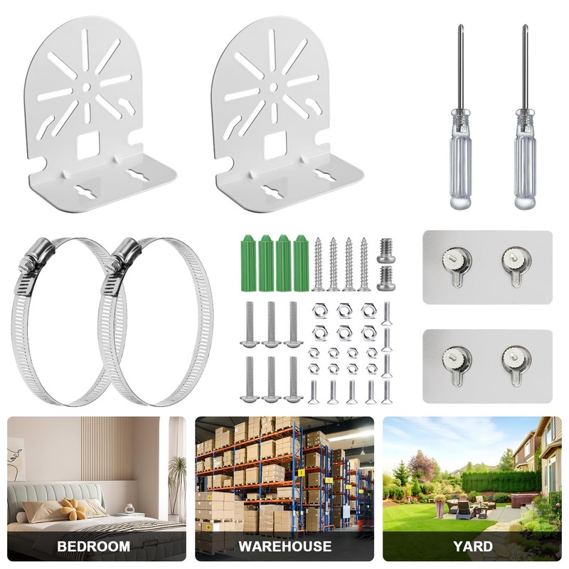 - Suitable for different places: surveillance camera mount can be easily attached to walls, and the adjustable hose clamp can be easily attached to water pipes.