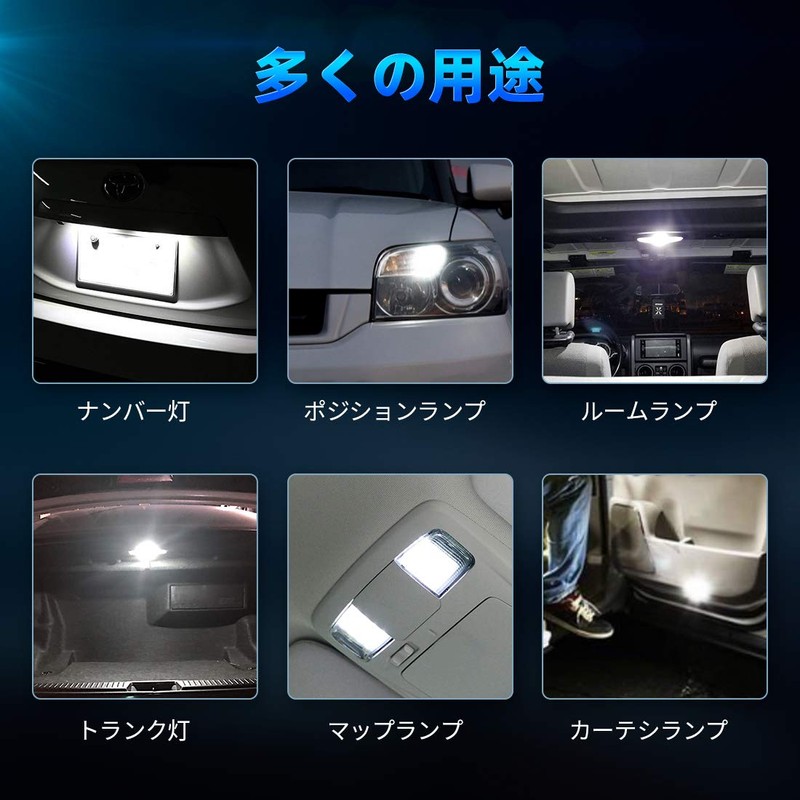 - [Multi-purpose valve] Suitable for automobiles. It is almost the same size as the original bulb (T10), so you can replace room lamp/license lamp/position lamp/courtesy lamp/trunk light/license lamp/clearance/tail lamp/wedge bulb
