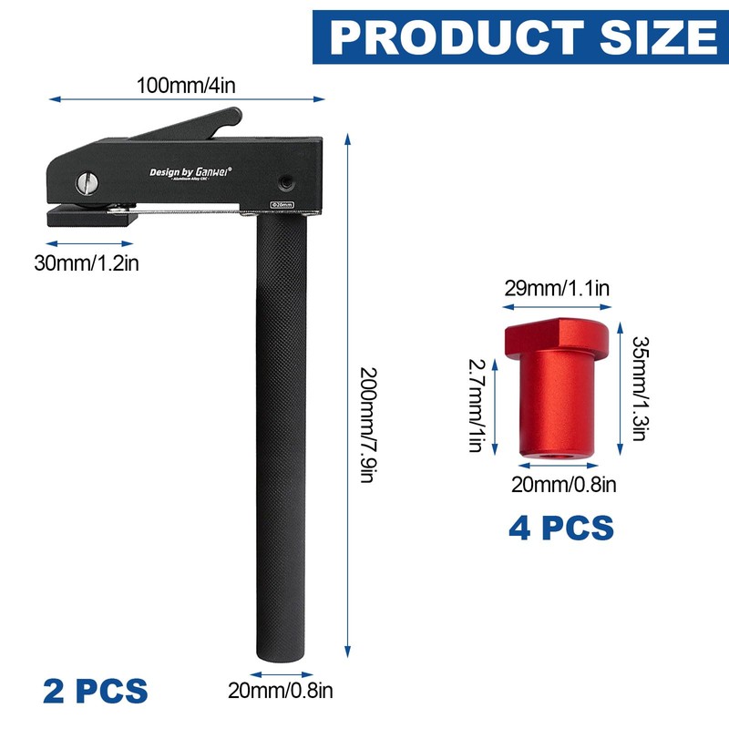 - What you get: you will receive 2 extra large 20 mm bench clamps (length = 200 mm) + 4 pieces aluminium alloy bench hooks 20 mm, suitable for any workbench with 20 mm large dog holes. With our professional woodworking accessories, you can make your work more efficient and easier.