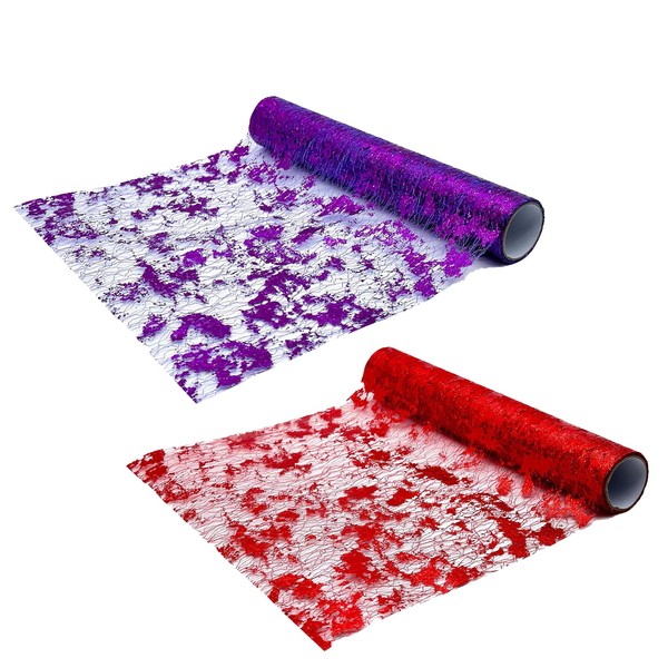 Pack of 2 Table Runners Birthday, Polyester Table Runner, Red, Organza Table Runner, Non-Woven Table Runner, Purple, for Party, Christenings, Wedding, Birthdays, Communion and Special Occasions, Table