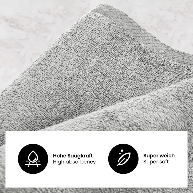 • Quality: the high-quality bath towel set made from 100% certified cotton, "Made in Green", is particularly skin-friendly, fluffy soft, absorbent and durable.
