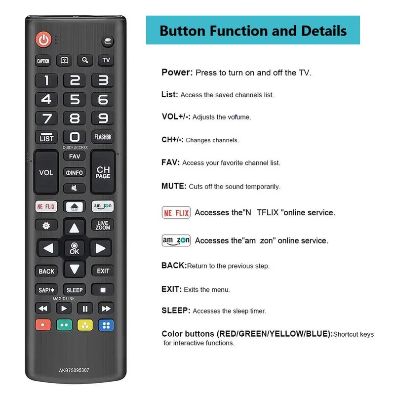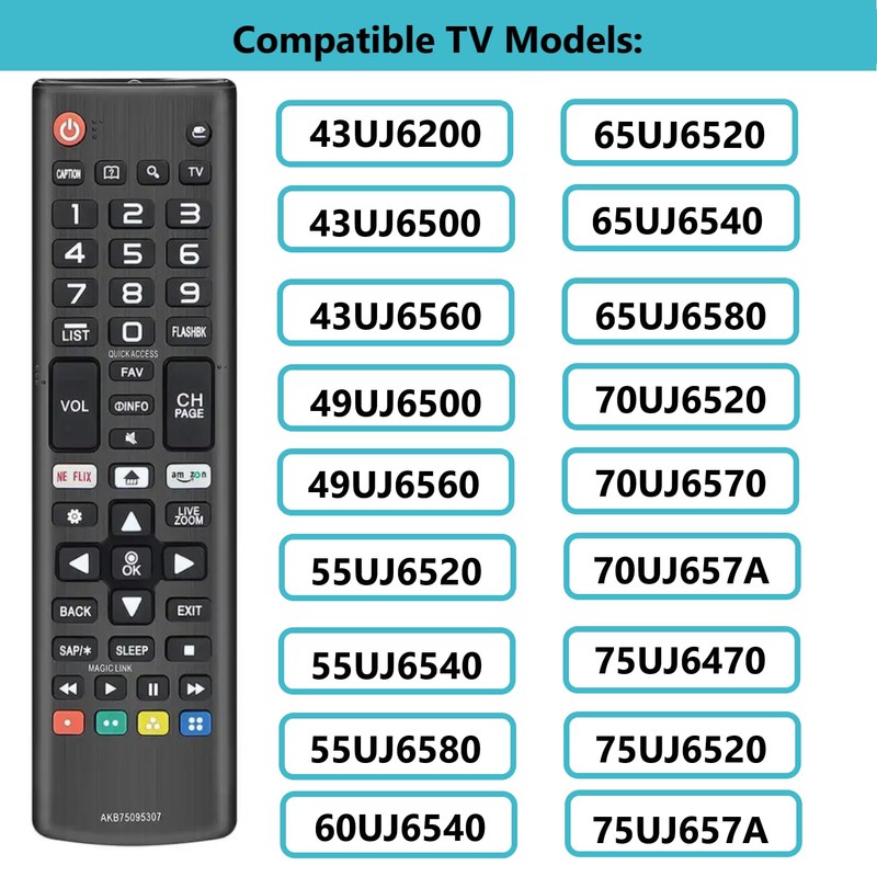- Broadest Compatible:Universial remote control fit for all L G LED OLED LCD HDTV 3D UHD HDR NanoCell 4K Smart TVs, is replacement for the L G AKB75675304 AKB74915305 AKB74475401 AKB74475433 AKB73975702 AKB75055701 AKB73975711 AKB73715608 AKB74475401 AKB75375604 AGF76631064 AKB74915324 AKB73715601 AKB75095308 and more.