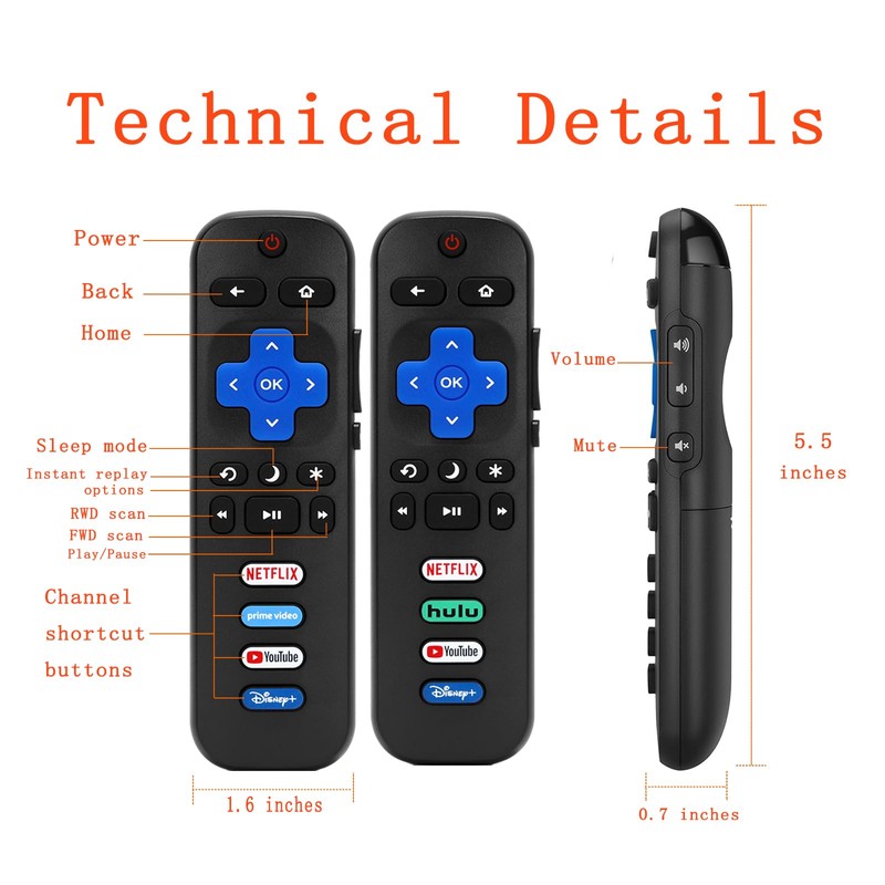 - Pack of 2&Two Versions:There are two version of the remotes in the package. One’s Shortcut buttons are Netflix/hulu/YouTube/Disnep/, the others’ are Netflix/prime/YouTube/Disnep. You can use two of them at the same time, which means you have 5 shortcuts to the channels.