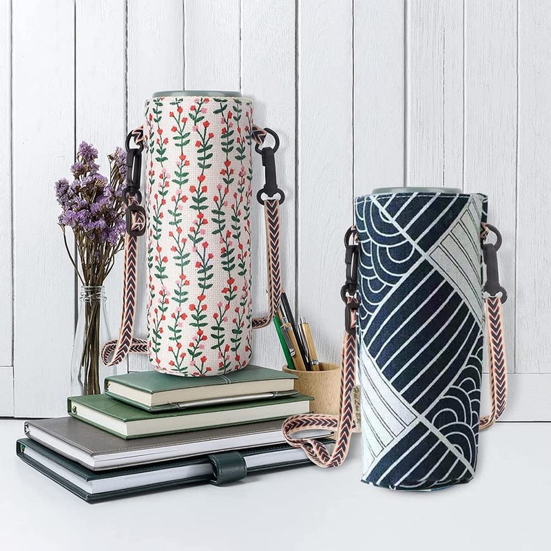 - High-quality materials: the water bottle cover is made of cotton and linen print, bright colours, lightweight and comfortable.