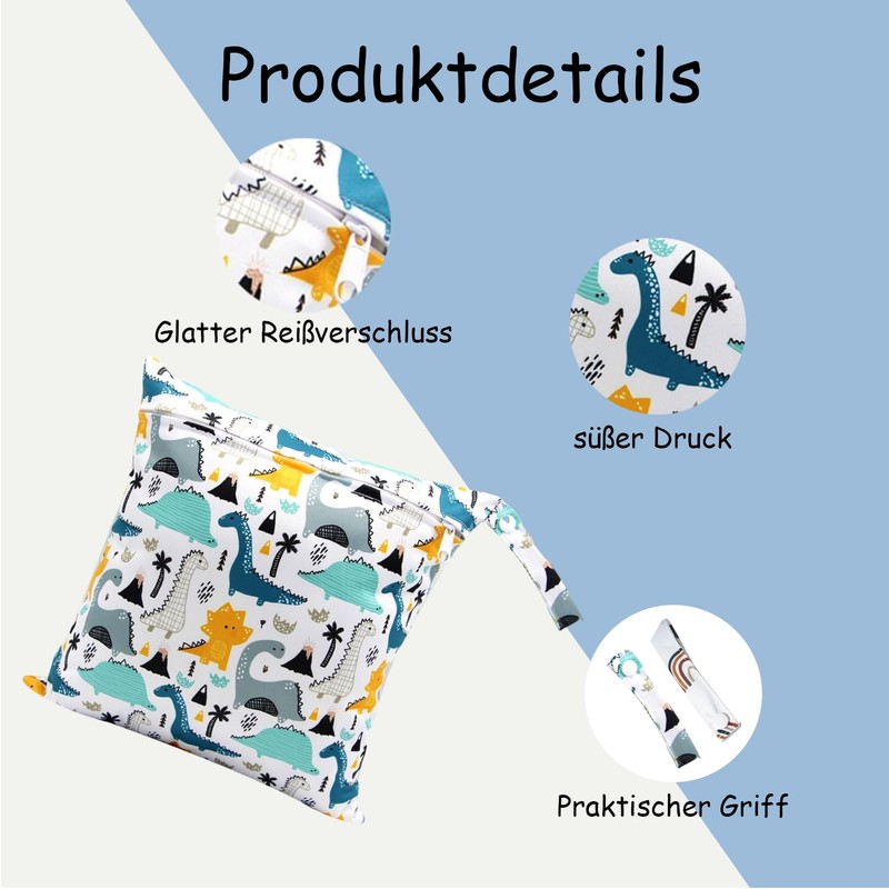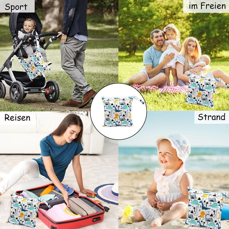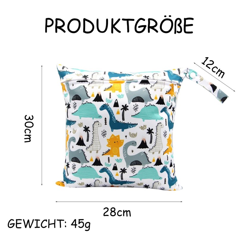 - Package contents: you will receive 2 pieces reusable wet bags nursery with cartoon print, size approx. 28 x 30 cm, each can hold approx. 5-6 nappies, weighs less than 50 grams and is easy to carry