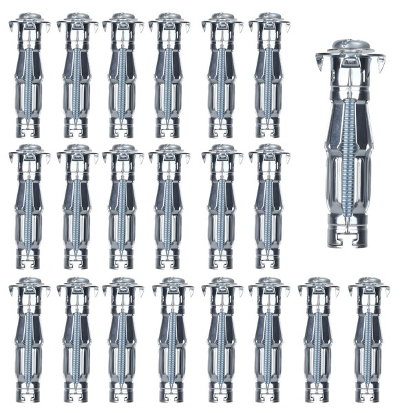 Pack of 20 Cavity Dowels Metal M8 x 52 mm, Galvanised Expansion Dowels with Screw, Cavity Dowels, Plasterboard Dowels, Metal Dowels, Cavity Wall Dowels for Plasterboard, Rigip, Wood Panels, Hollow