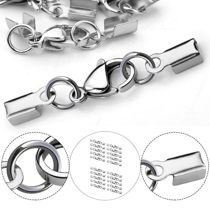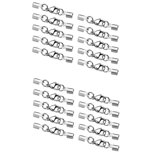 Pack of 20 Clasps for Bracelets, Silver Leather Band Chain Lobster Clasp for DIY Necklace Clip Clasp Jewellery Making Stainless Steel Chain Clasp Bracelets Jewellery Clasps