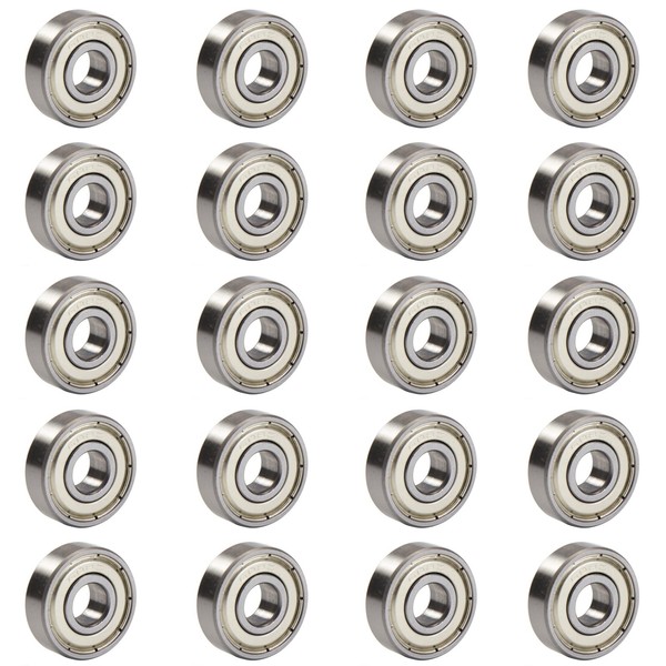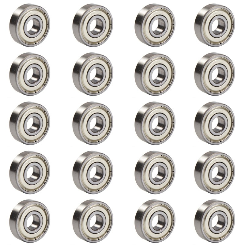 Pack of 20 Deep Groove Ball Bearings, Ball Bearings, Miniature Radial Ball Bearings, Can Be Used in 3D Printers, Skateboards, Inline Skates, Longboards, Scooters and Roller Skates etc. (Silver)
