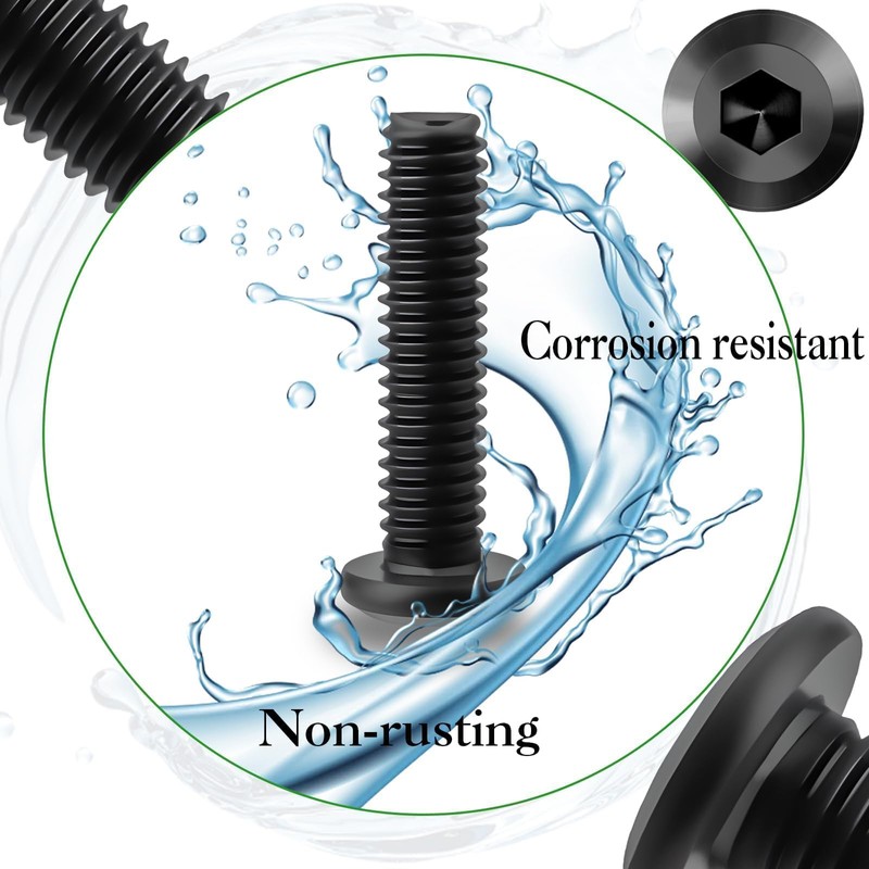 (1) Screws M6 are made of 304 stainless steel with black zinc plated surface, which is corrosion resistant, rust resistant, high hardness and not easy to deform, ensuring stability, durability and long term service life.