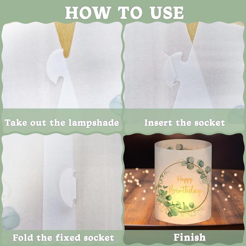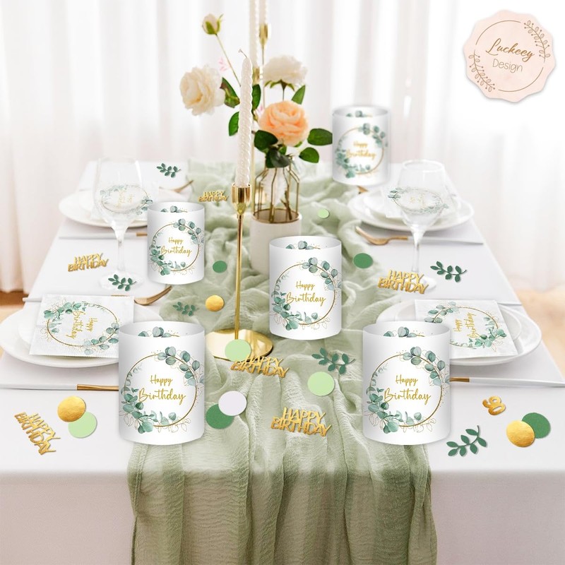 - Registration: Our green eucalyptus birthday decoration set is perfect for birthday table decorations, this decoration is ideal for women, men, girls, boys, children, the lantern are easily assembled (lantern installation can be referred to the seventh operation picture), they look great and make your table elegant and charming, which immediately attracts attention and makes the party more vibrant and elegant