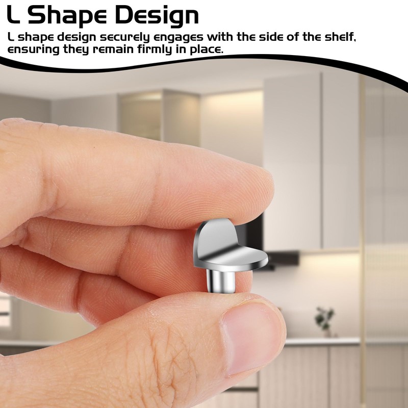 • Nickel plating: shelf support for cabinet is made of a high-quality nickel-plated zinc alloy and gives your furniture an elegant and modern touch. The non-slip shelf support pins are rust-proof, resistant to oxidation and corrosion, therefore a long service life.