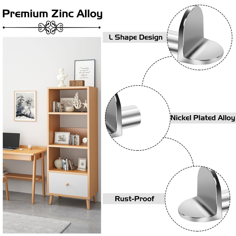 4. These L-shaped metal shelf supports can hold heavy objects effortlessly without bending or breaking. With this glass furniture holder, you can effectively prevent rack wobbling.