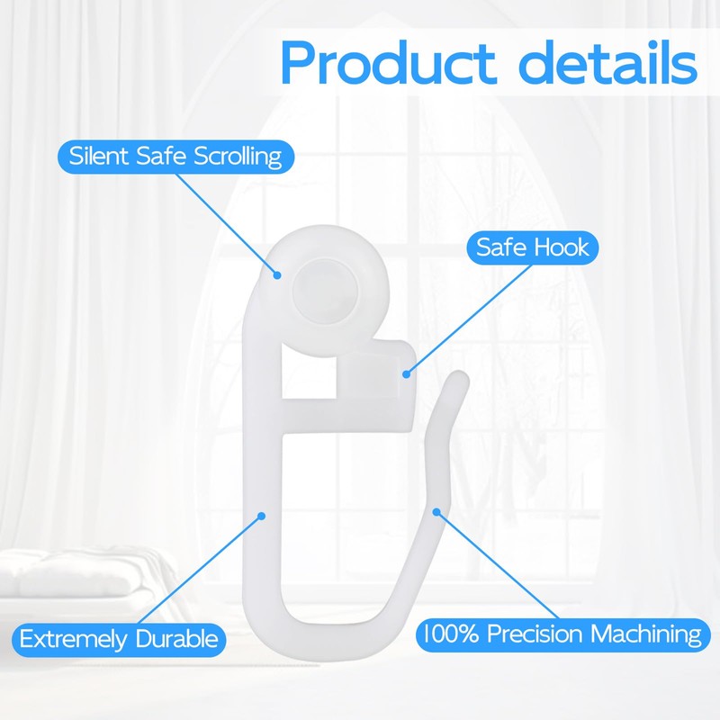 Folding hook with safety lock: the curtain hook has a lockable buckle, so that the curtain does not fall easily. Simply slide the plastic curtain hooks gently onto the curtain rail and you can assemble without additional tools.