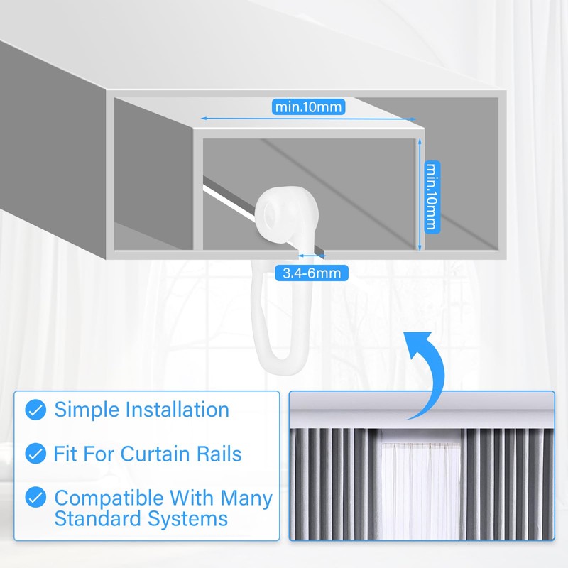 - Smooth gliding: the curtain hooks for rails run quietly and smoothly in your curtain rail and are also completely invisible. These curtain gliders are suitable for most standard guide rails and are often used in guide rails curtains.