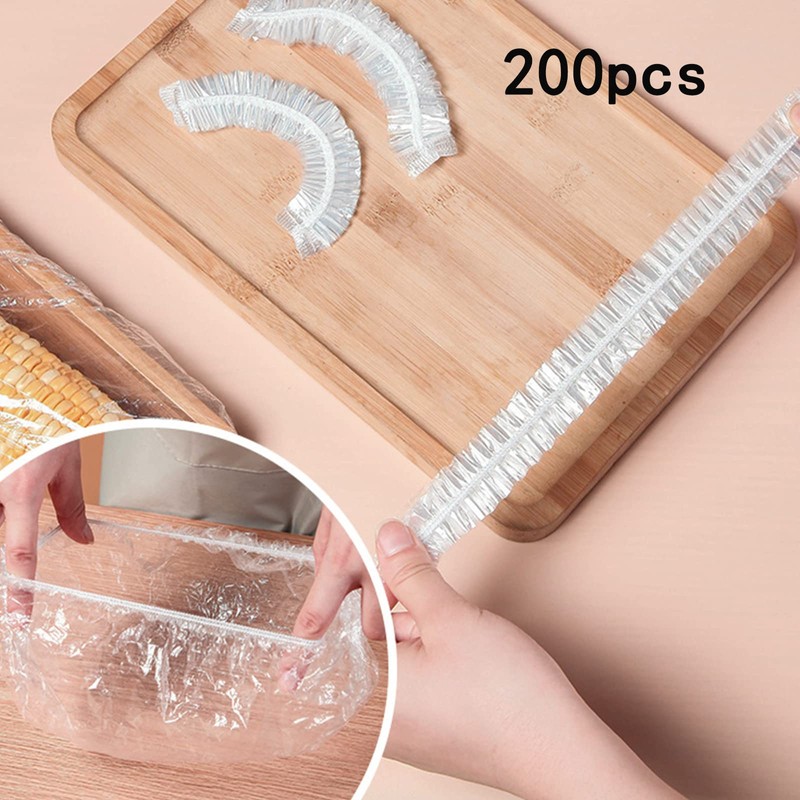 Pack of 200 Food Storage Bags, Sealing Bags, Food Cover, Reusable Elastic Covers, Elastic Food Storage Bags, for Food Storage, Fruit Preservation, Shower Caps