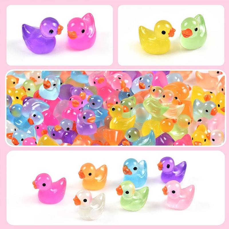 Pack of 200 Luminous Mini Resin Ducks - Colourful Miniature Ducks in 20 Colours, Glow-in-the-Dark Figures for Aquarium, Fairy Garden, DIY Crafts & Dollhouse Decoration