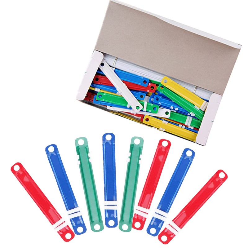 Pack of 200 Paper Fasteners Filing Strips, Plastic Filing Strips, Colourful Filing Strips, Metal Folders for Office and School (Random Colour)