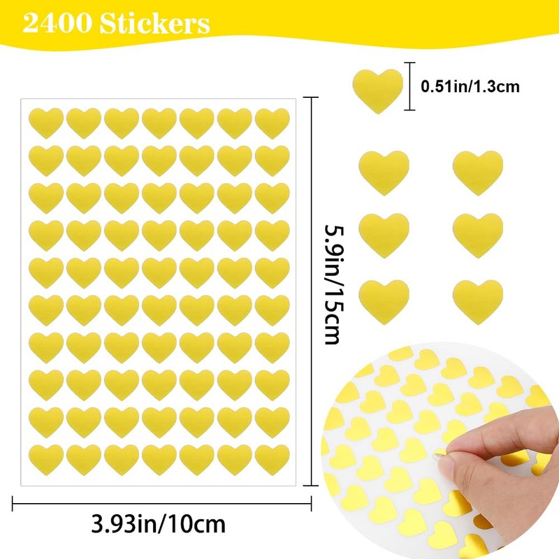 - Package contents: you will receive 40 sheets of heart stickers each with 54 golden heart stickers; mini stickers can meet your different needs. Students can use them for handmade colourful sticker decorations, teachers can use them as reward stickers and so on.