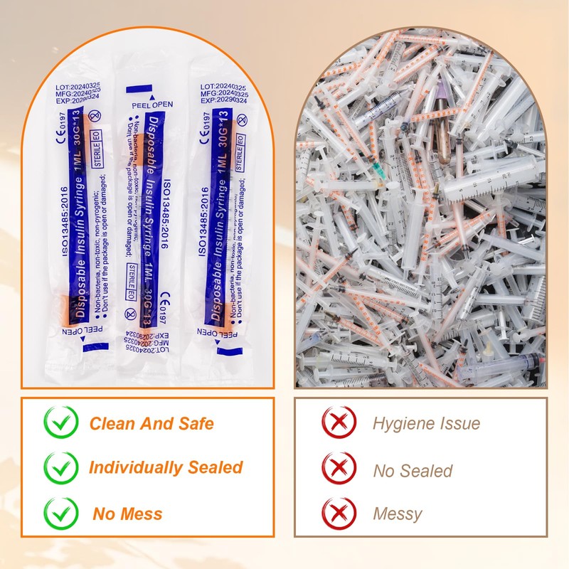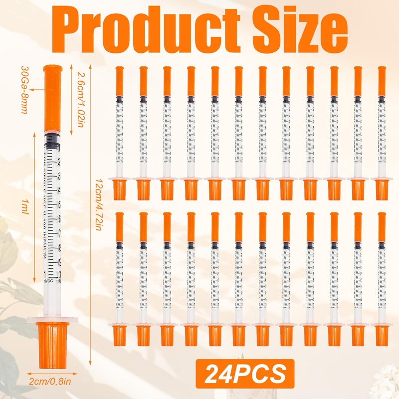 - Syringes with caps: you will receive 24 pieces 1ml syringe with 24 caps, enough for your daily use and replacement. Each syringe is individually sterile packed so you can use it with confidence.