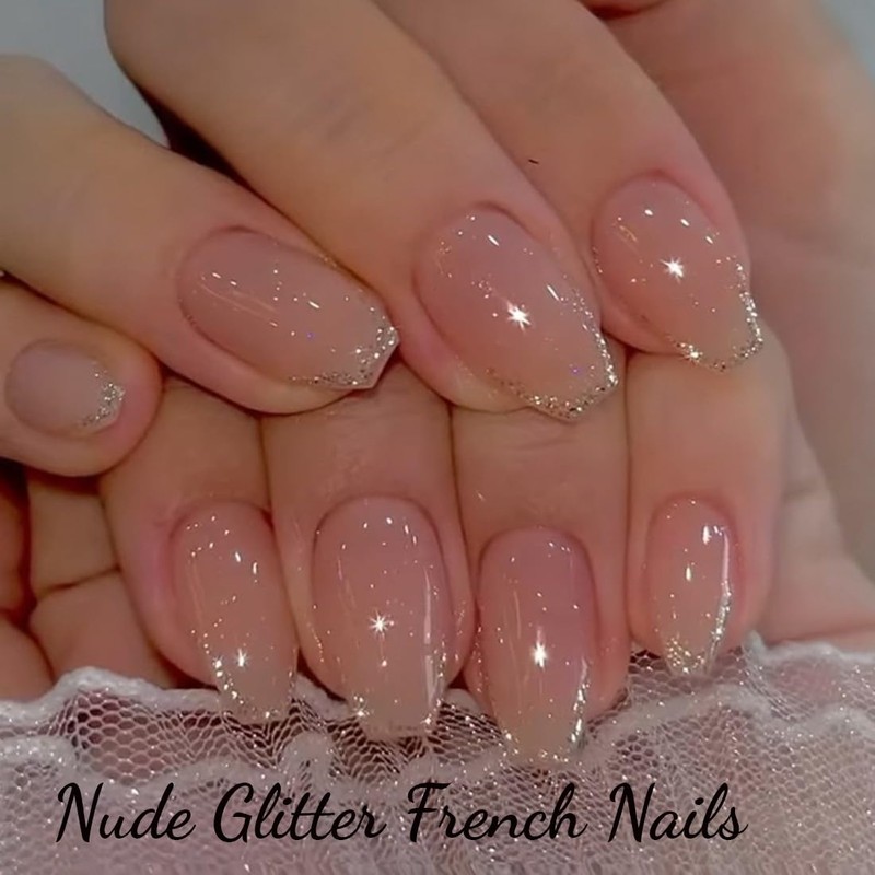 Pack of 24 French Tip for Press On Nails, Glue On Nails, Press On Nails Fingernails for Sticking, Artificial Nails with Glitter Designs, False Nails for Sticking