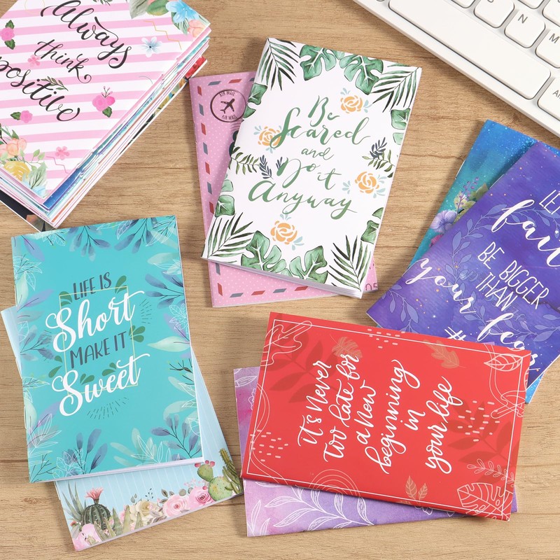 • MOTIVATIONAL COVER DESIGNS Each notepad small is designed with inspirational sayings and colorful illustrations. These positive messages create a pleasant mood and encourage motivation while learning, working and planning.