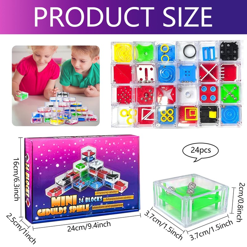 - MAZE BOX SET: 24 labyrinths with different difficulty levels, each 38 x 38 x 19 mm, easy to carry, different types of mazes, great fun for children's hobbies and can also be filled by several people.