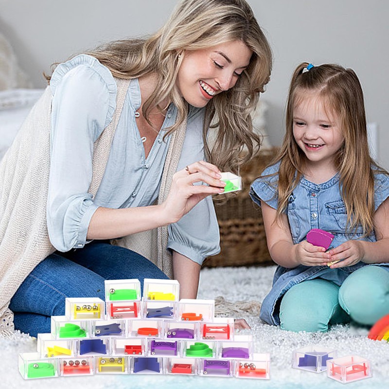 - Fun Patience Game Set for Kids: This set contains 24 patience games for children, which are made of high quality durable material. The smooth surface and rounded edges make the maze cups safe for children and adults. Each puzzle cube is available in different bright colours such as green, yellow, purple, blue and orange, providing plenty of variety when playing.