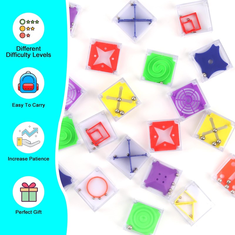 - Different difficulty levels: each of the 24 mini thinking games has a size of 35 x 35 x 18 mm and offers different levels of difficulty, which are suitable for children of different ages. The mazes come in a sturdy color box so they stay safe and protected without breaking easily.