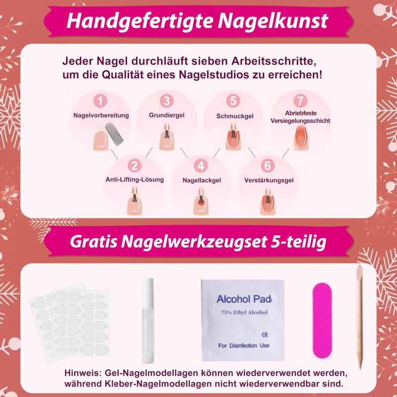 - Easy to use for Christmas: the self-adhesive Christmas nails allow you to quickly and easily get festive nails. Give your hands a glamorous Christmas look in no time. Simply apply and enjoy your nails - ideal for the hectic holidays or as a Christmas gift for nail lovers!