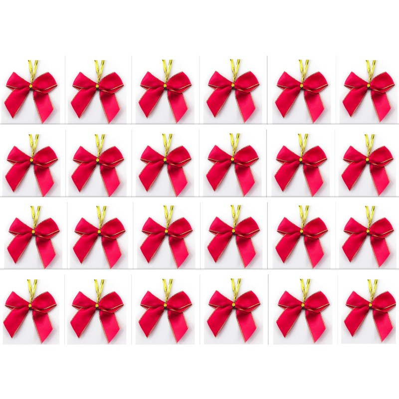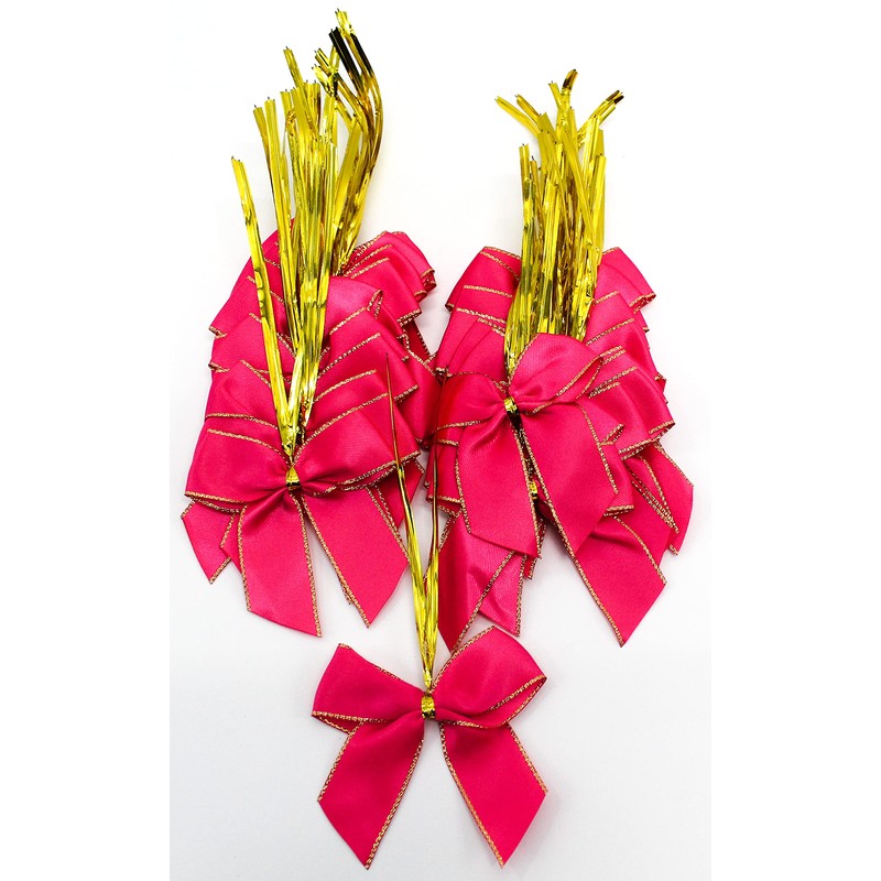 Pack of 24 Satin Bows Christmas Tree 6 cm Satin with Fastening Clip (Fuchsia)