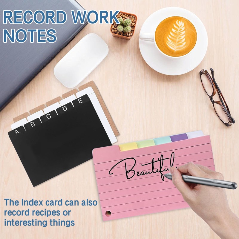 - Card tabs: Enjoy sufficient storage space with this index card organiser that can hold up to 350 index cards. It is the perfect organizer box to manage notes, receipts, pictures and more. To make the notes quick and clear, we design the lines. Index box set the different tabs help you easily classify and organise files.