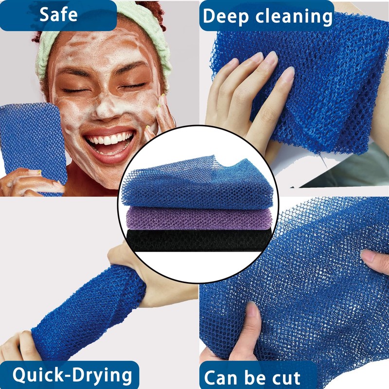 - Effective cleaning: bath net sponge structure than the average scrub cloth feels slightly rougher but soft enough, can be considered a tool for scratching the back, which easily removes dead skin, dirt, oil and impurities, frees pores and suitable for women and men in most ages.