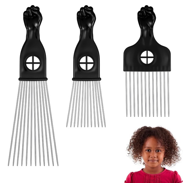Pack of 3 Afro Hair Comb, Metal Curling Comb, Various Lengths Afro Comb Hair Styling Comb Afro Comb Curling Comb for Natural Curly Hair, Perm and Afro Large Beards