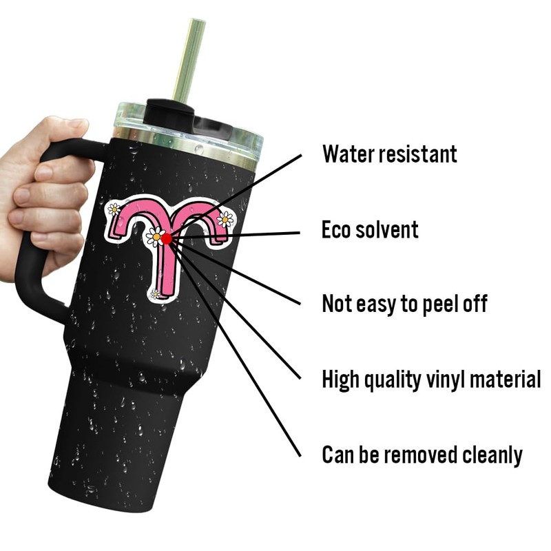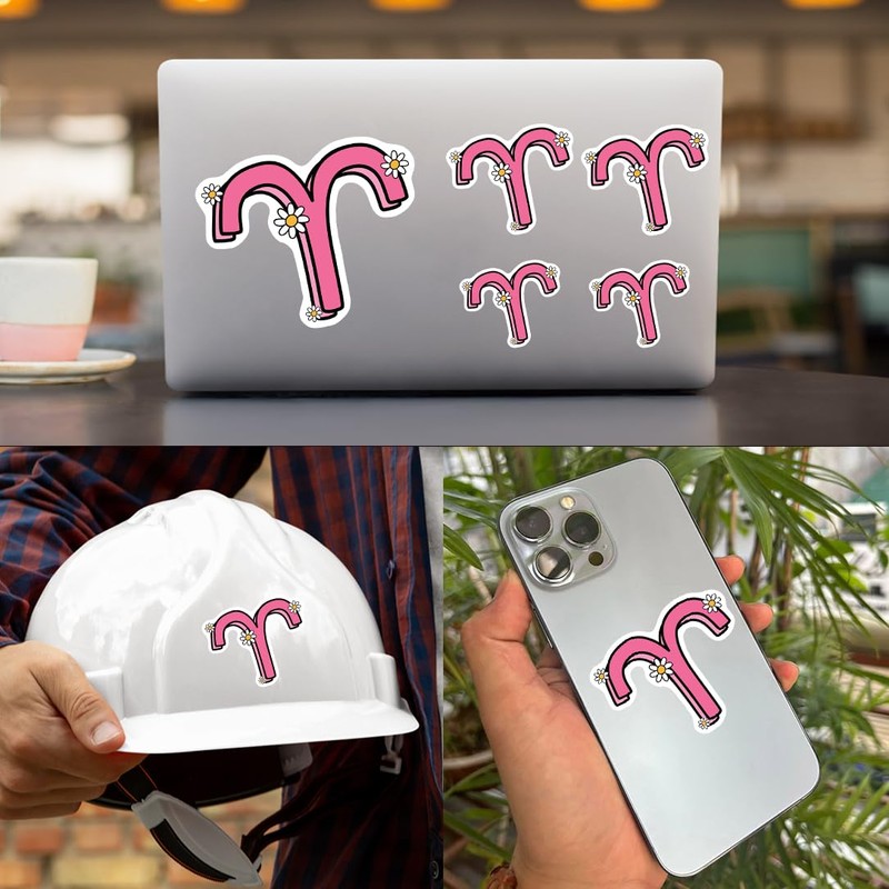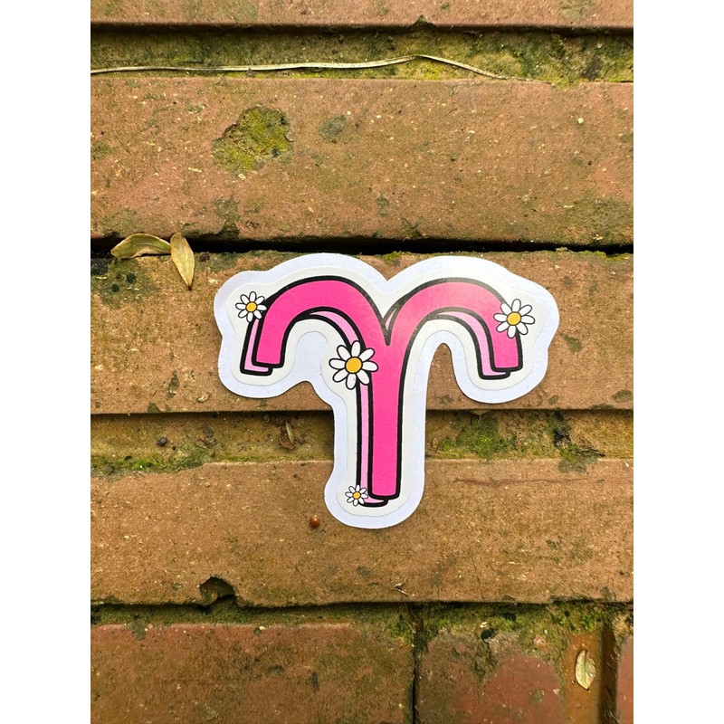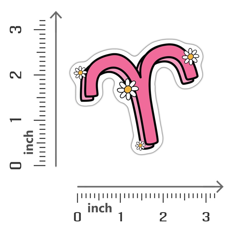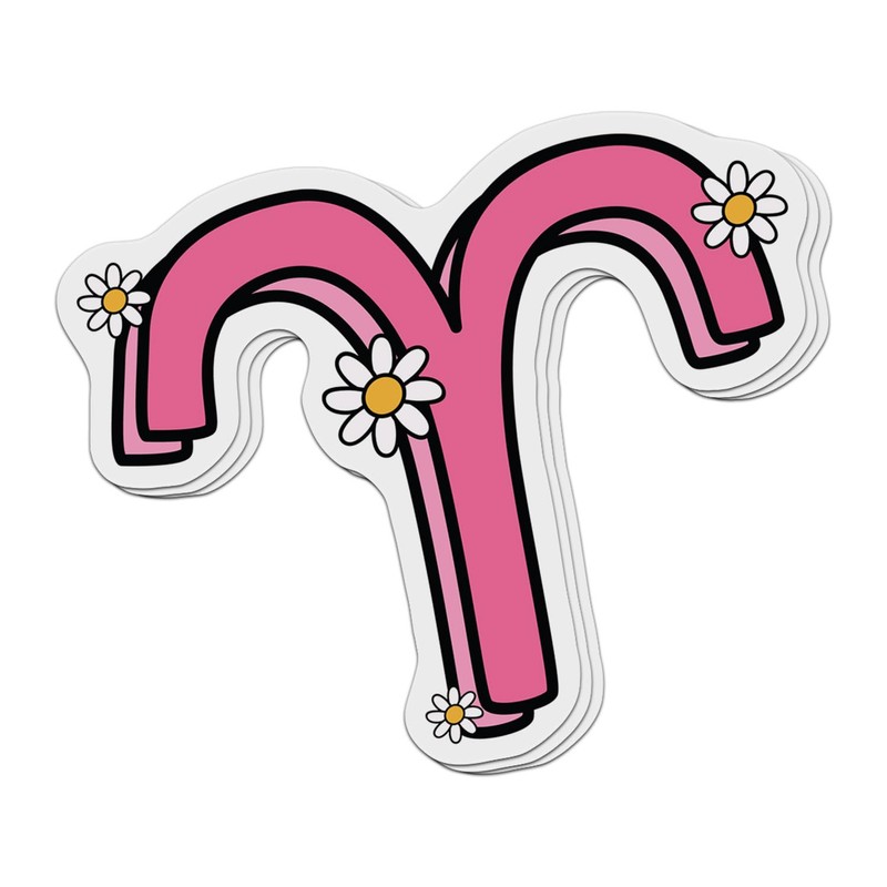 - Decorative Stickers: Liven up your space with this pack of 3 vibrant Aries zodiac sign stickers featuring a stylized sign design accented with daisies.