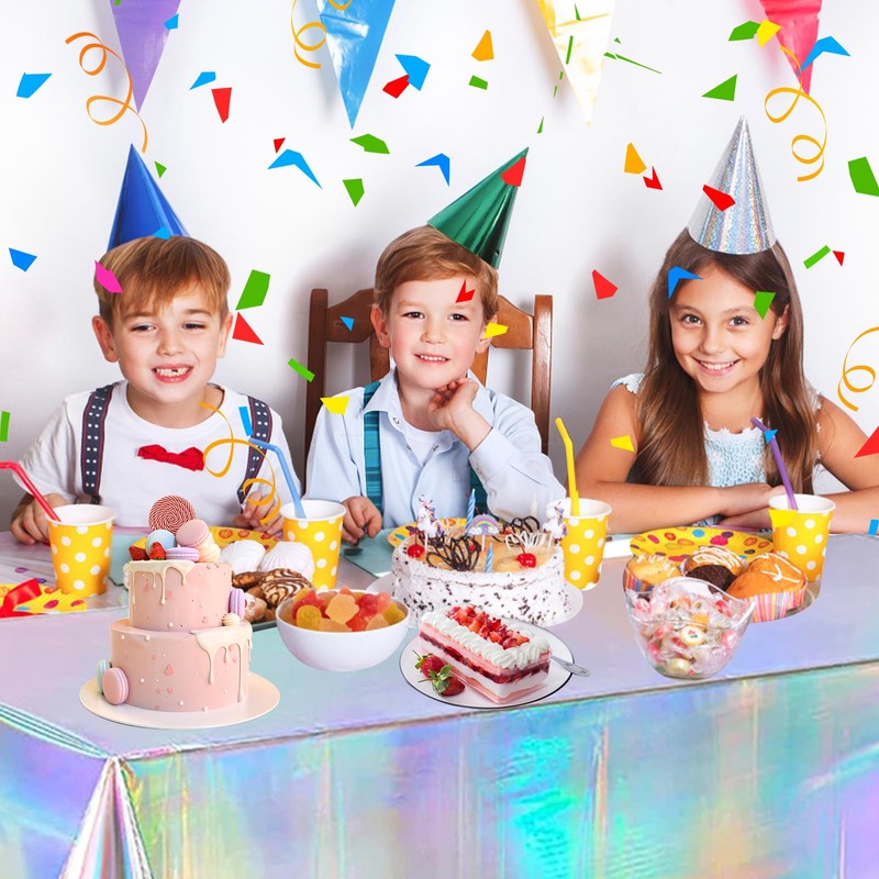 - Iridescent holographic effect: with a stunning, laser-inspired holographic finish, these tablecloths give any celebration a colourful and festive atmosphere and make them an outstanding choice for carnival and lively gatherings.