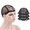 Pack of 3 Black Lace Wig Caps for Wig Making, Wigs, Hair Net for Women with Adjustable Straps to Keep Wigs in Place (Black, XS)