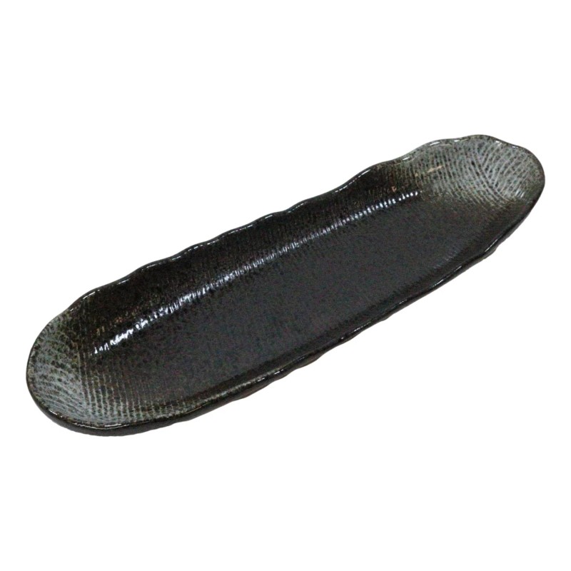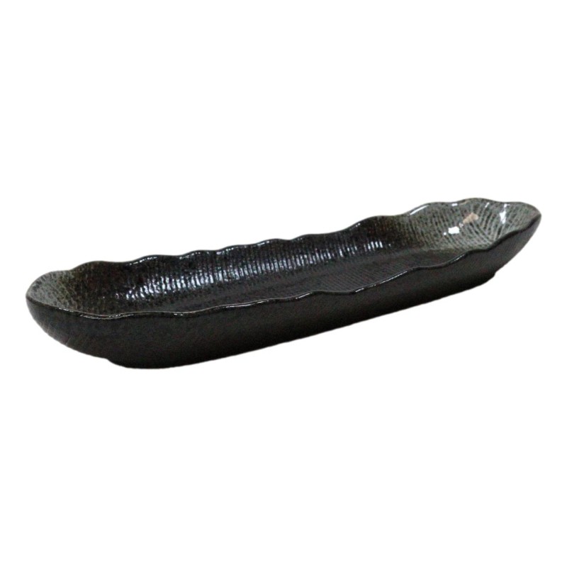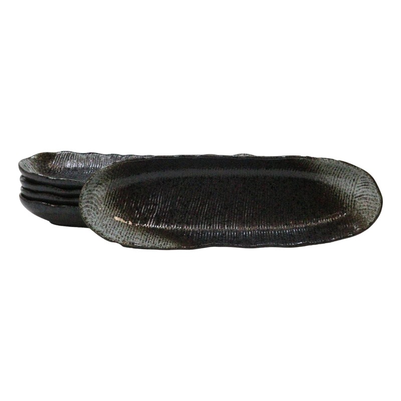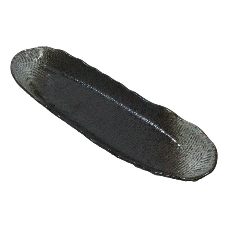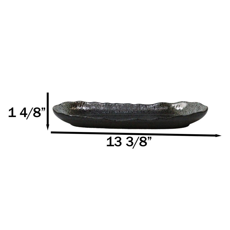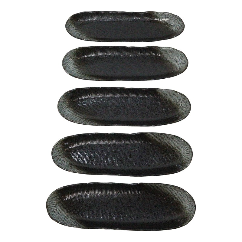 Pack Of 3 Charcoal Grey Tone Hakumu Wavy Oblong Long Serving Platter 13.25"L