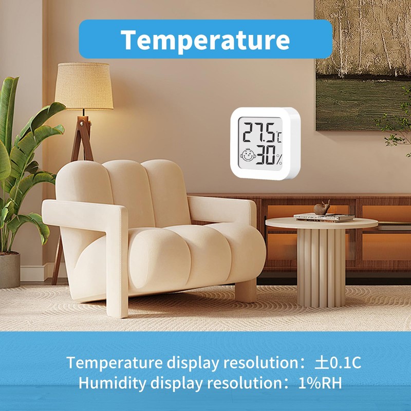- Temperature and air humidity: This great mini thermometer measures the temperature and humidity indoors such as living room, library, bedroom, kitchen, greenhouse, equipment room, wine cellar, warehouse, basement, baby room, wardrobe