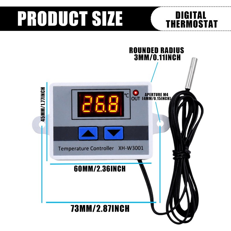 Pack of 3 Digital Temperature Controller, XH-W3001 Digital Thermostat with Sensor, Waterproof Probe, AC110V-220V Temperature Switch, LCD Display, Heating and Cooling