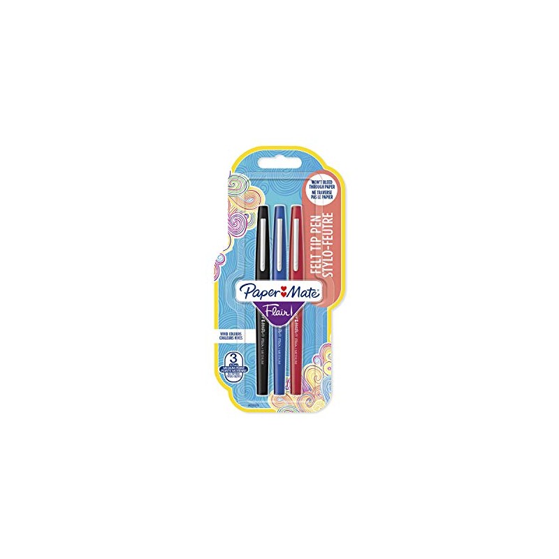 Pack of 3 Flair Original PAPERMATE Felt-Tip Pens Medium Tip 3 Coloursaa