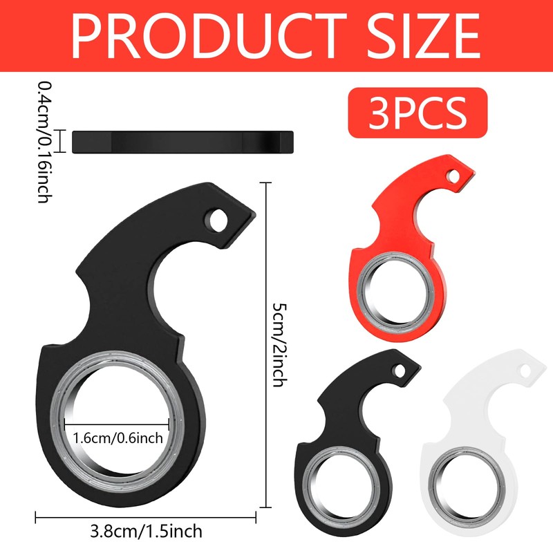 - Improve concentration: let it run with one hand when you focus on the task of thinking. The keyring spinner can improve your attention and concentration.