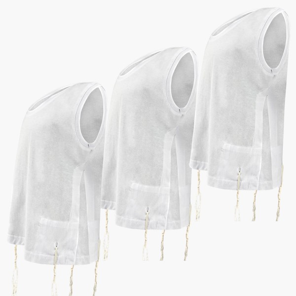 Pack of 3 Kids Ashkenaz Tzitzit T-Shirt Round Neck -100% Cotton Tallit Katan Meyuchad Thin Strings Undershirt, Kosher Premium Quality Size 6 White