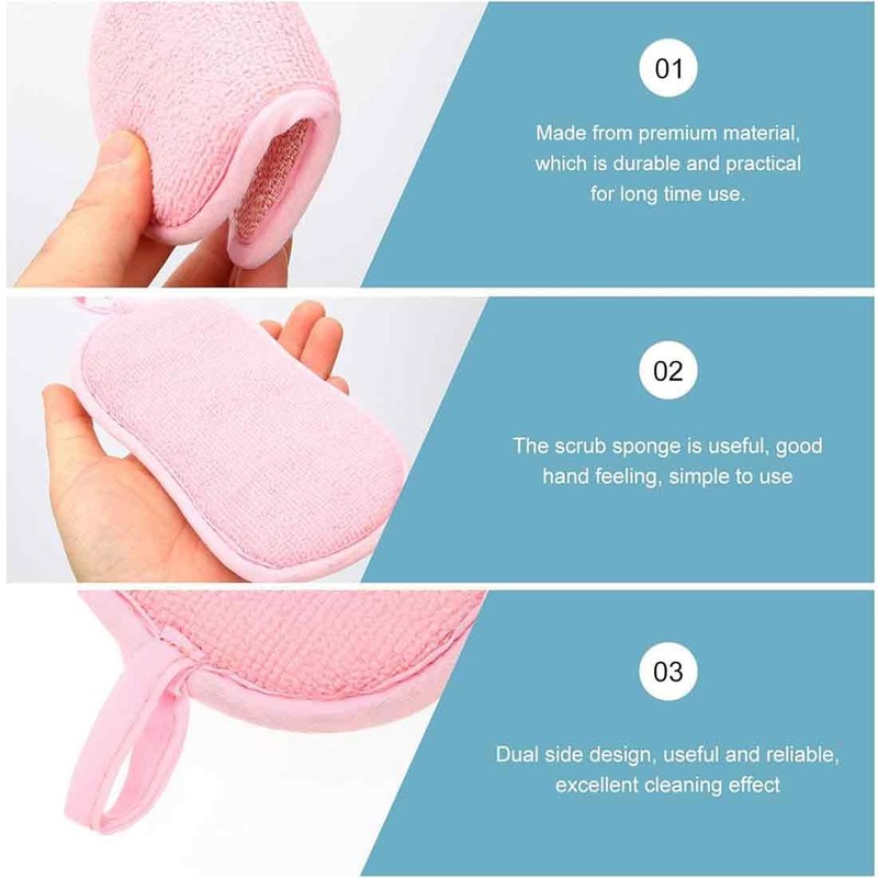 - Dual function kitchen sponge with microfiber and scouring sides. Effortlessly removes dirt from various surfaces.